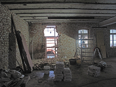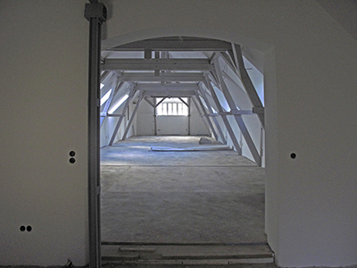 Putz- und Trockenbauarbeiten im Obergeschoss des Malzhauses. |
