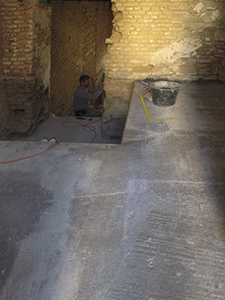 10.03.2019 Links: Neue Türstürze an den Treppenhauszugängen Rechts: Das veputzte Atelier im EG Malzhaus. |