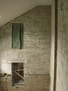 12.03.2019 Verputze Decke und Deckenunterzüge im Atelier des Malzhauses. |